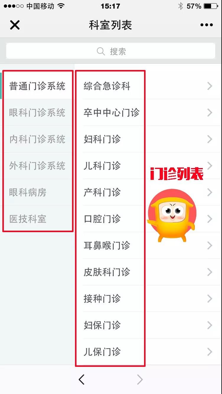 選擇需要掛號的門診科室